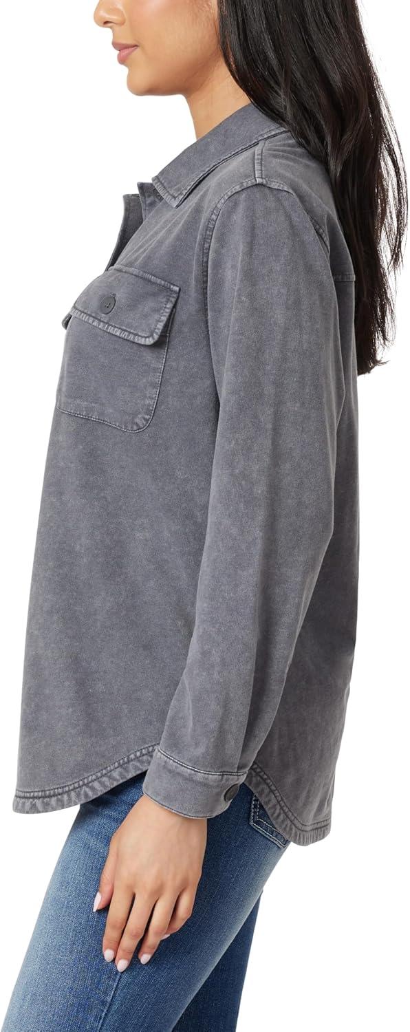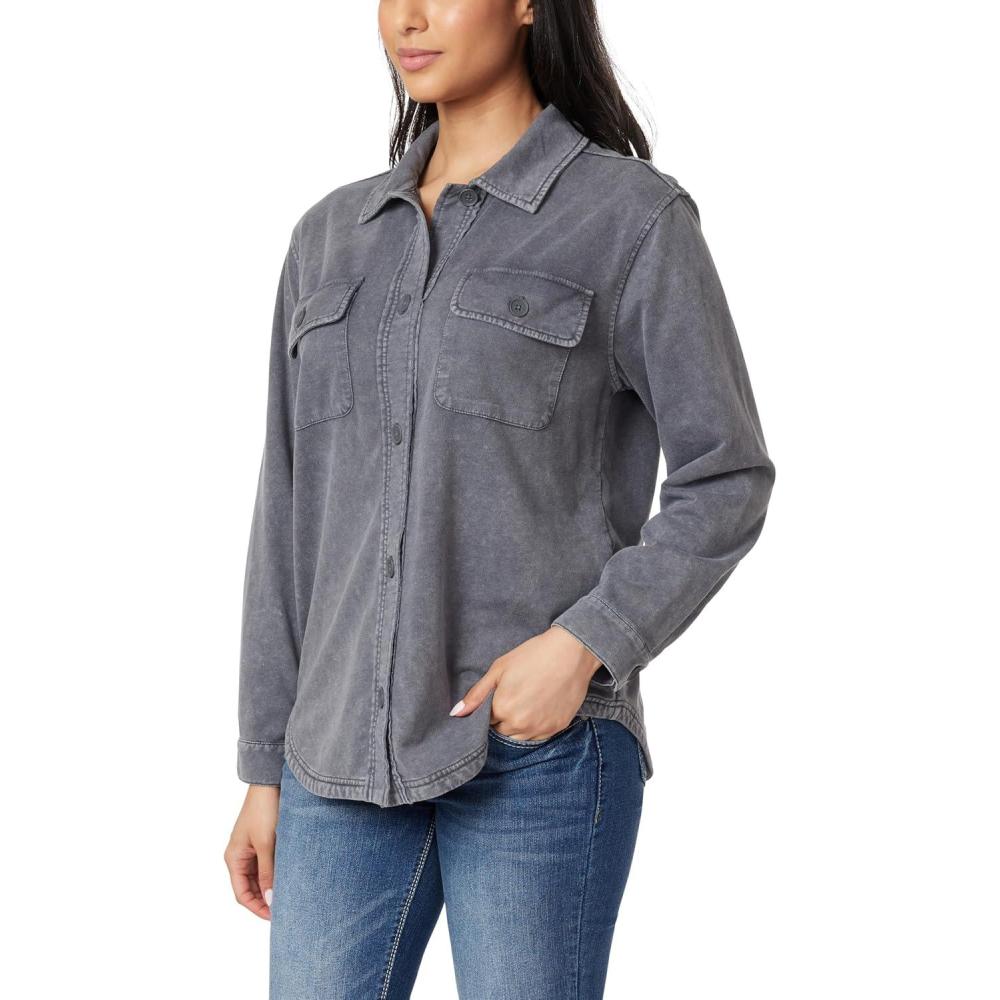 imageWallFlower Casual Fleece and Plaid Shackets Jackets Juniors for Women Soft ButtonDownBlack Pearl
