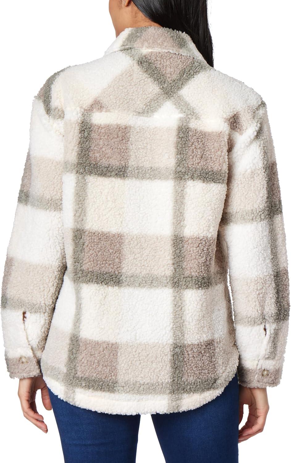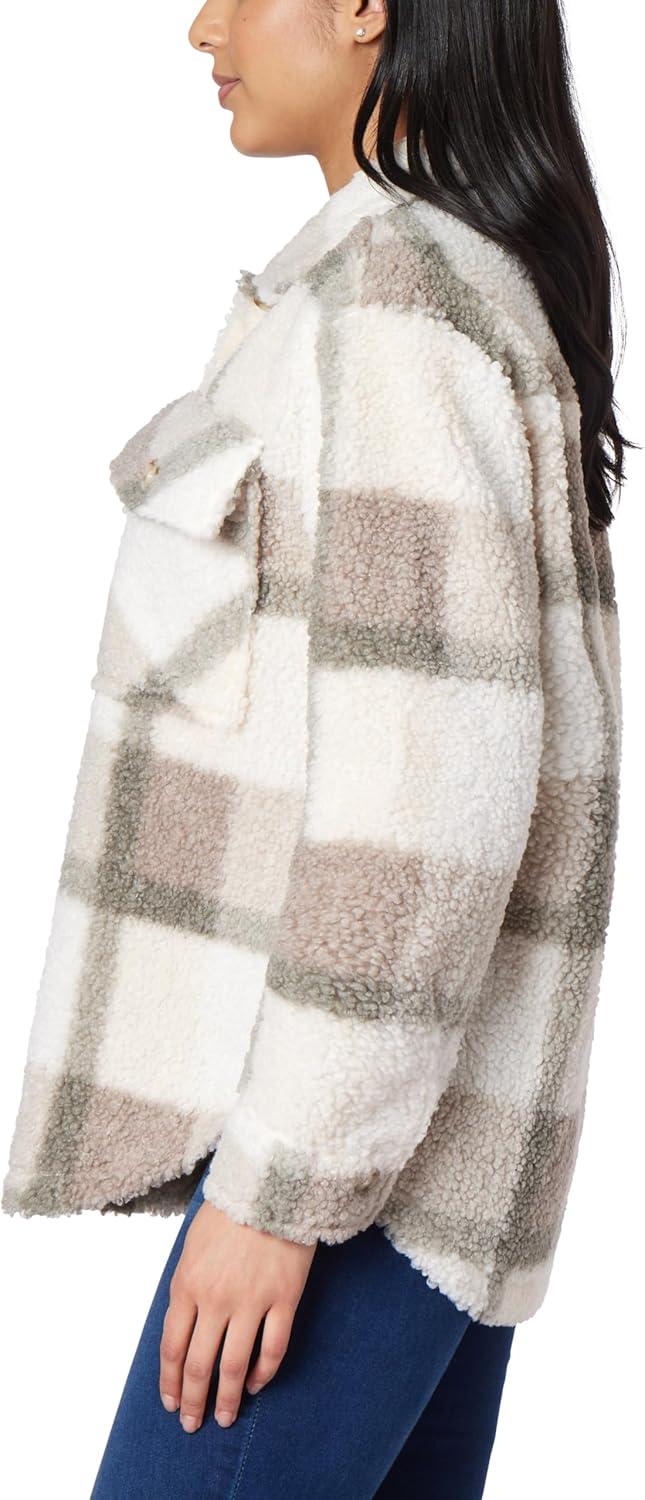 imageWallFlower Casual Fleece and Plaid Shackets Jackets Juniors for Women Soft ButtonDownFrosted IvySnowfall