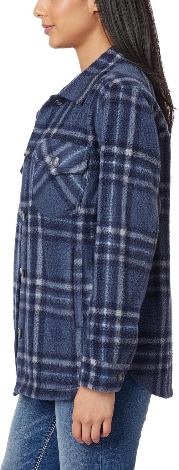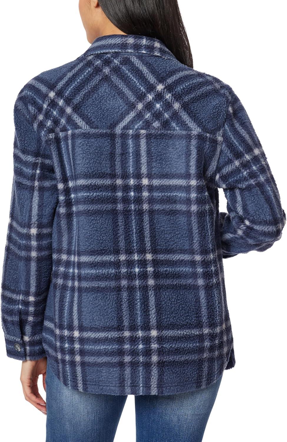 WallFlower Casual Fleece and Plaid Shackets Jackets Juniors for Women, Soft Button-Down(Mood Indigo)