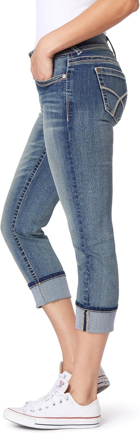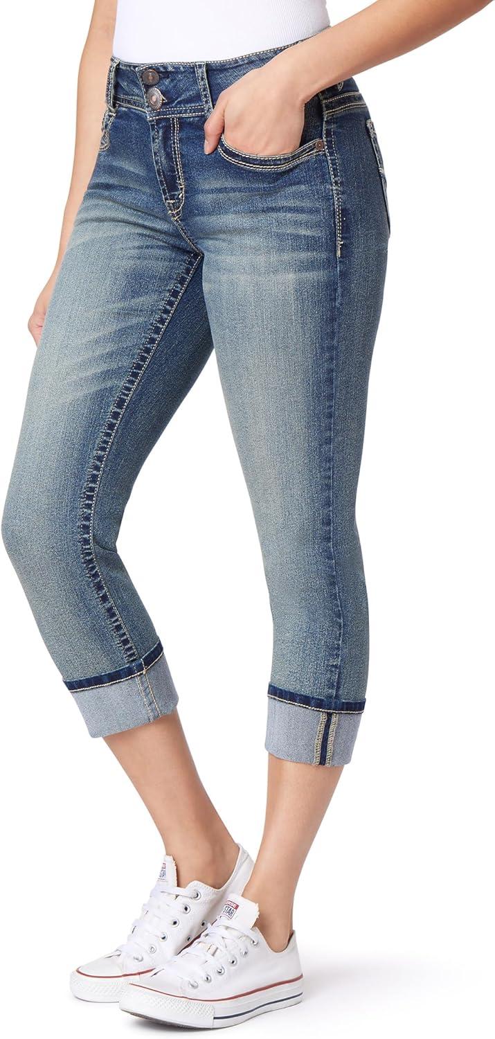 WallFlower Luscious Curvy 23.5” Mid-Rise Cropped Jeans for Women, Insta Stretch Denim Juniors Jeans(Betsy)