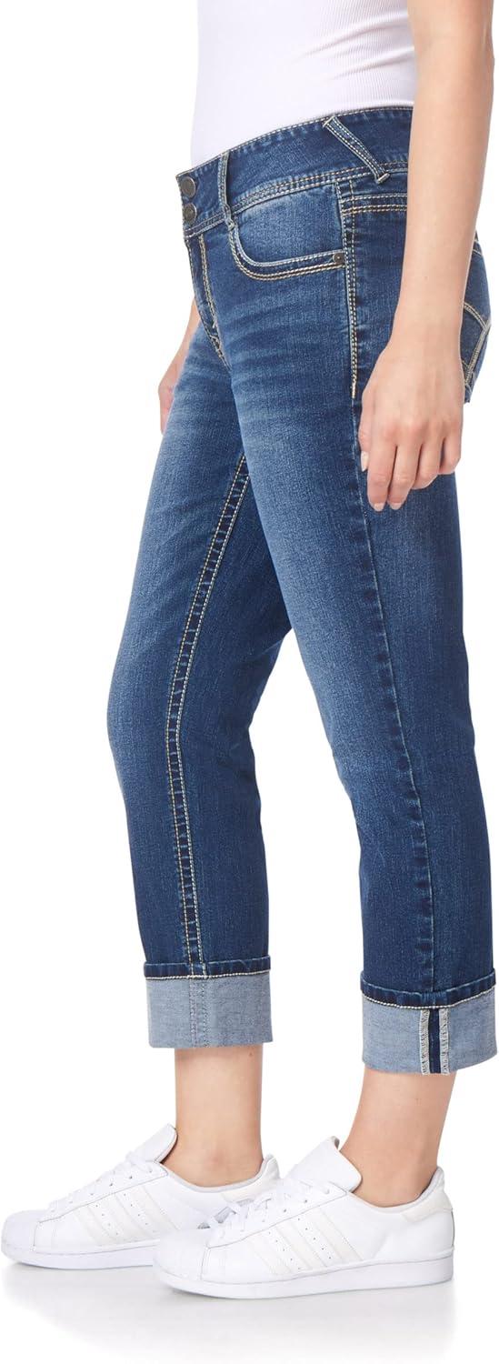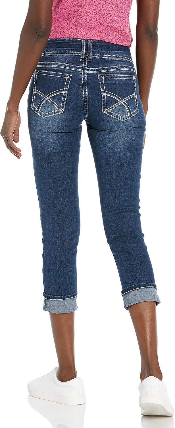 WallFlower Luscious Curvy 23.5” Mid-Rise Cropped Jeans for Women, Insta Stretch Denim Juniors Jeans(Evan)