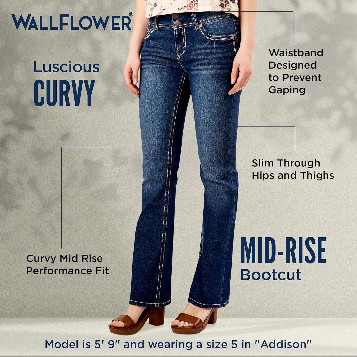 WallFlower Luscious Curvy Bootcut Jeans for Women Mid-Rise Insta Stretch Denim, Size Inclusive Juniors Jeans, Sizes 0 to 24(Addison)