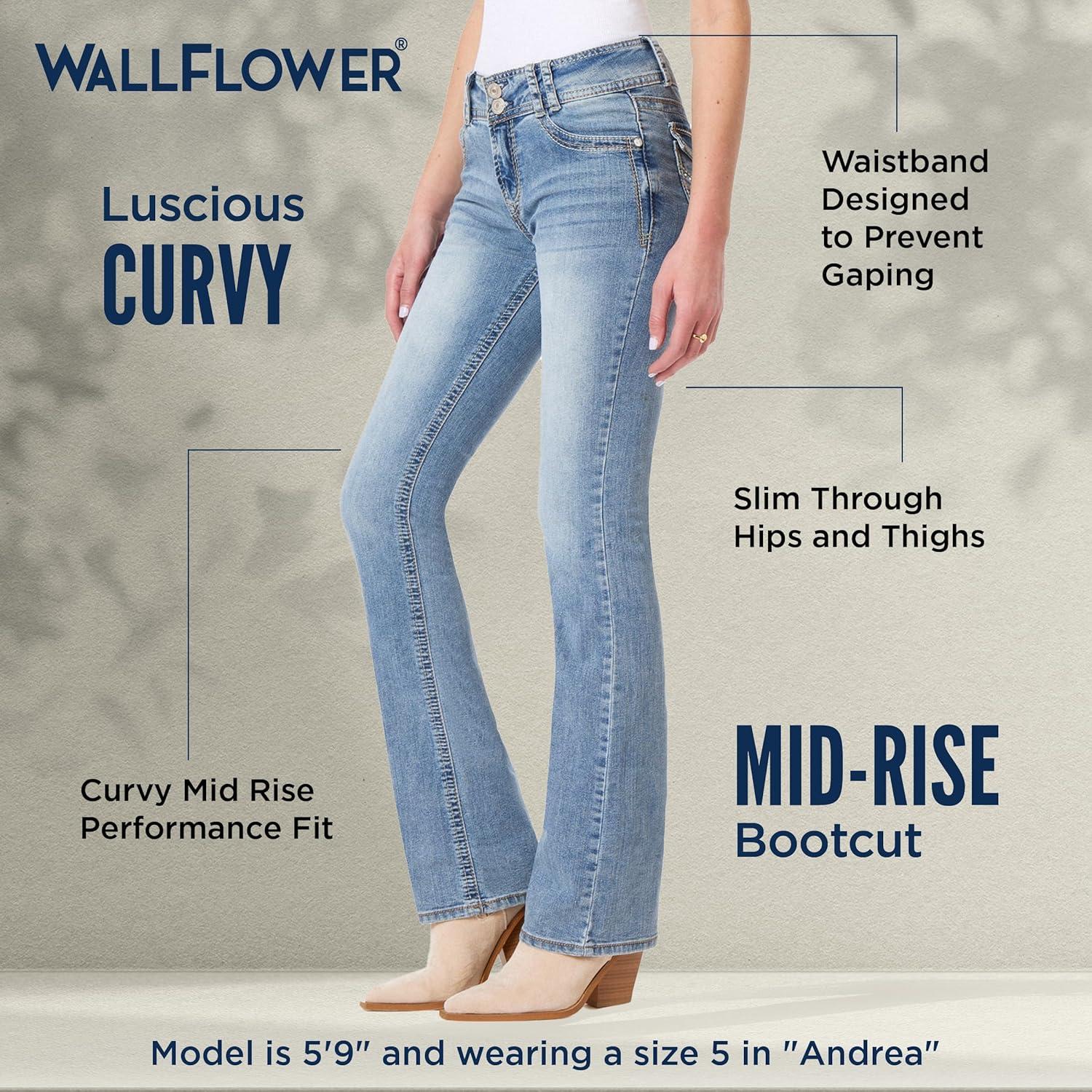 WallFlower Luscious Curvy Bootcut Jeans for Women Mid-Rise Insta Stretch Denim, Size Inclusive Juniors Jeans, Sizes 0 to 24(Andrea)
