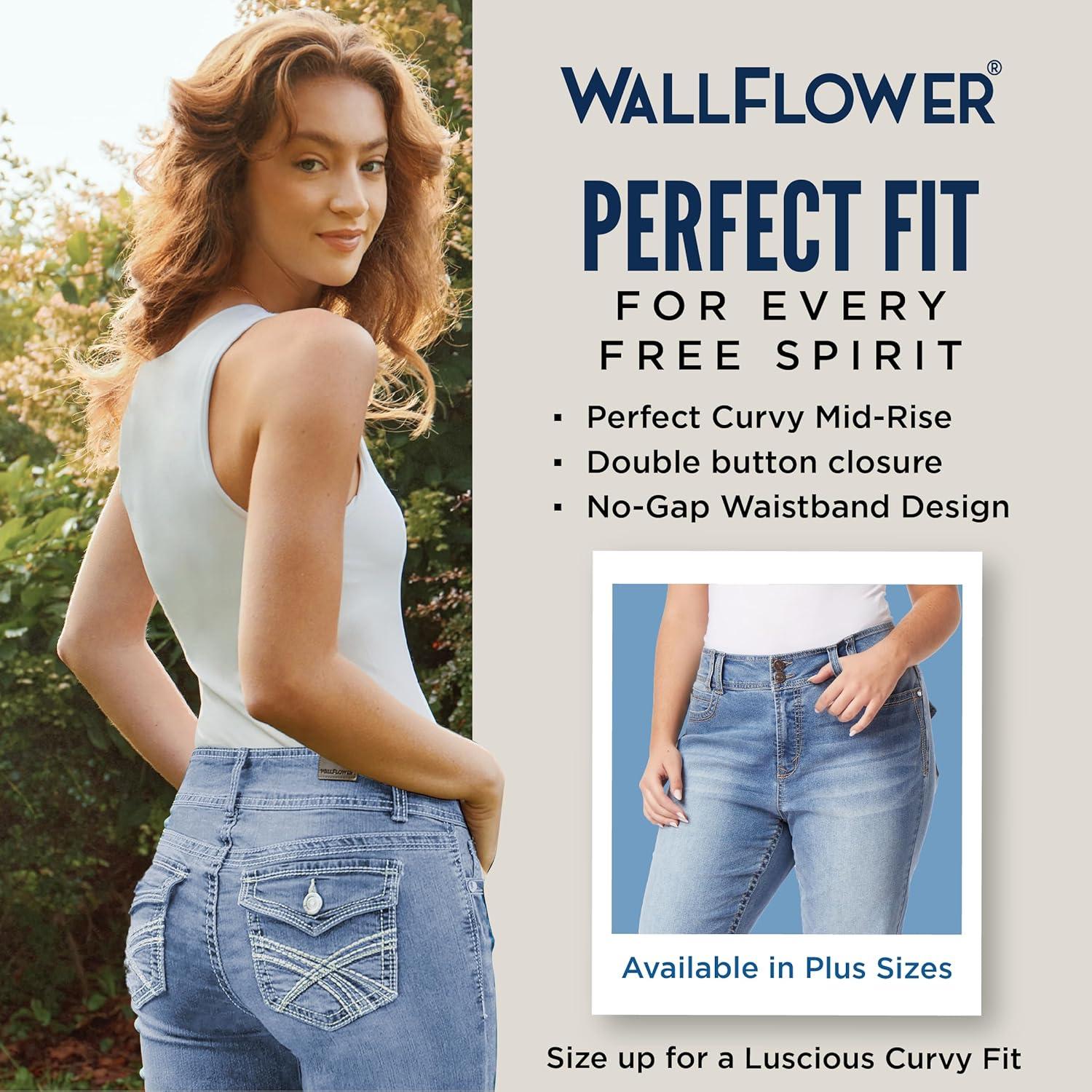 WallFlower Luscious Curvy Bootcut Jeans for Women Mid-Rise Insta Stretch Denim, Size Inclusive Juniors Jeans, Sizes 0 to 24(Chrystie Pure)