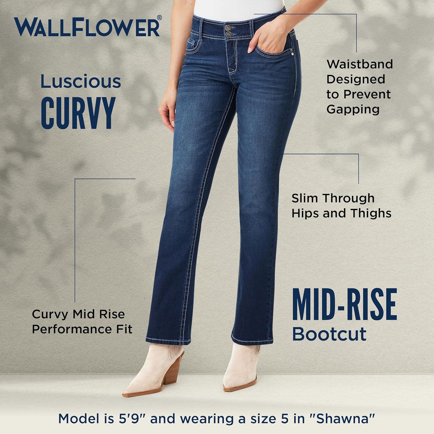WallFlower Luscious Curvy Bootcut Jeans for Women Mid-Rise Insta Stretch Denim, Size Inclusive Juniors Jeans, Sizes 0 to 24(Shawna)