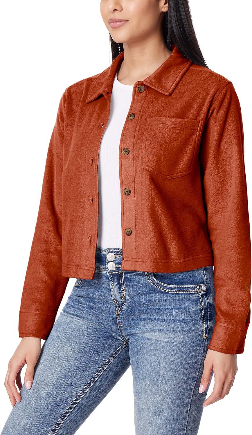 WallFlower Women’s Chloe Polar Cozy Fleece Boyfriend Spring, Summer and Fall Light Shacket Jackets(Gingerbread)