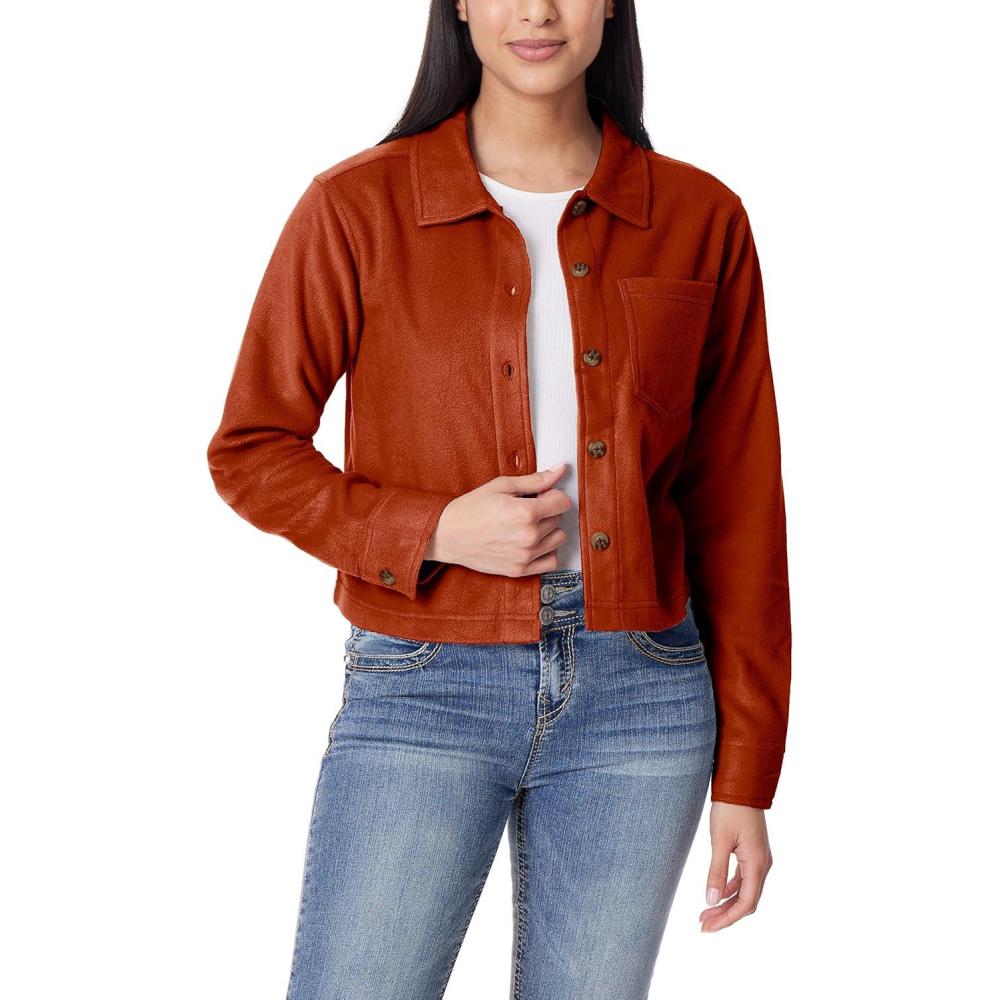 WallFlower Women's Chloe Polar Cozy Fleece Boyfriend Spring, Summer and Fall Light Shacket Jackets(Gingerbread)