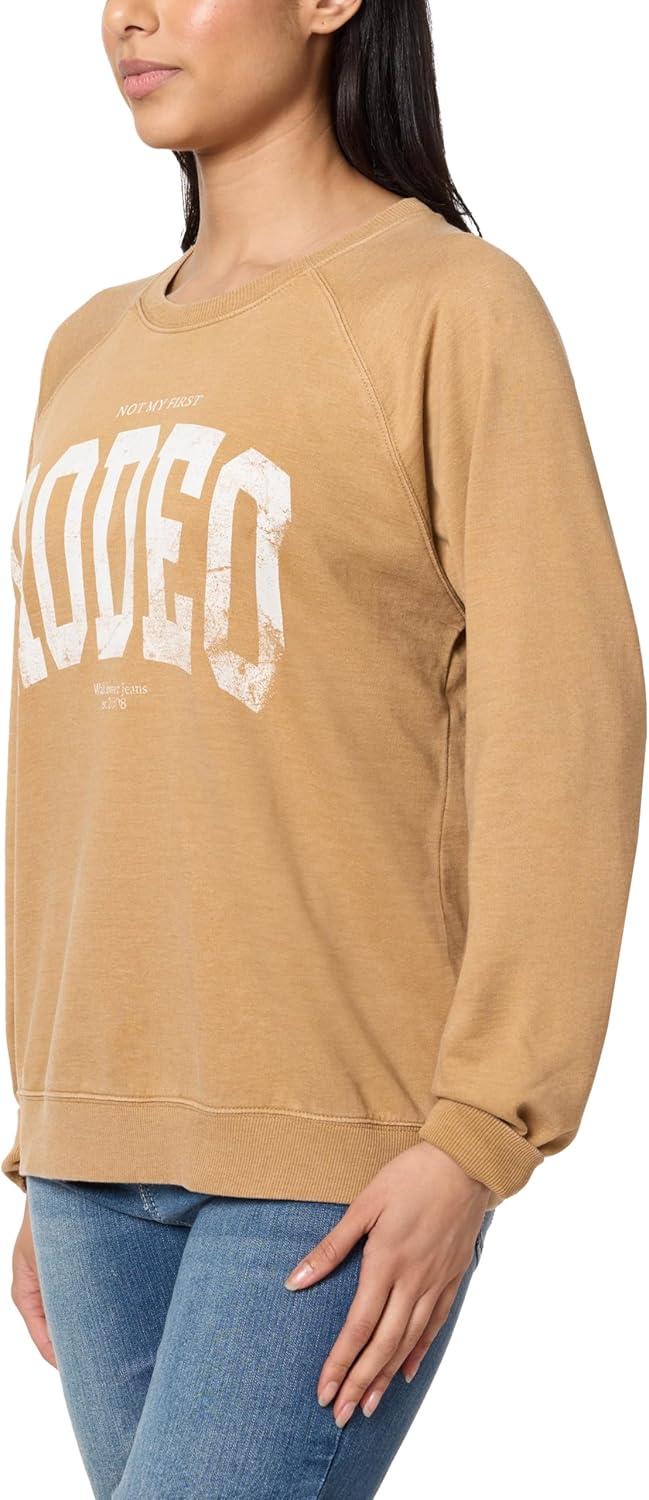 WallFlower Women's Dallas Oversized French Terry Graphic Sweatshirt(Iced Coffee)