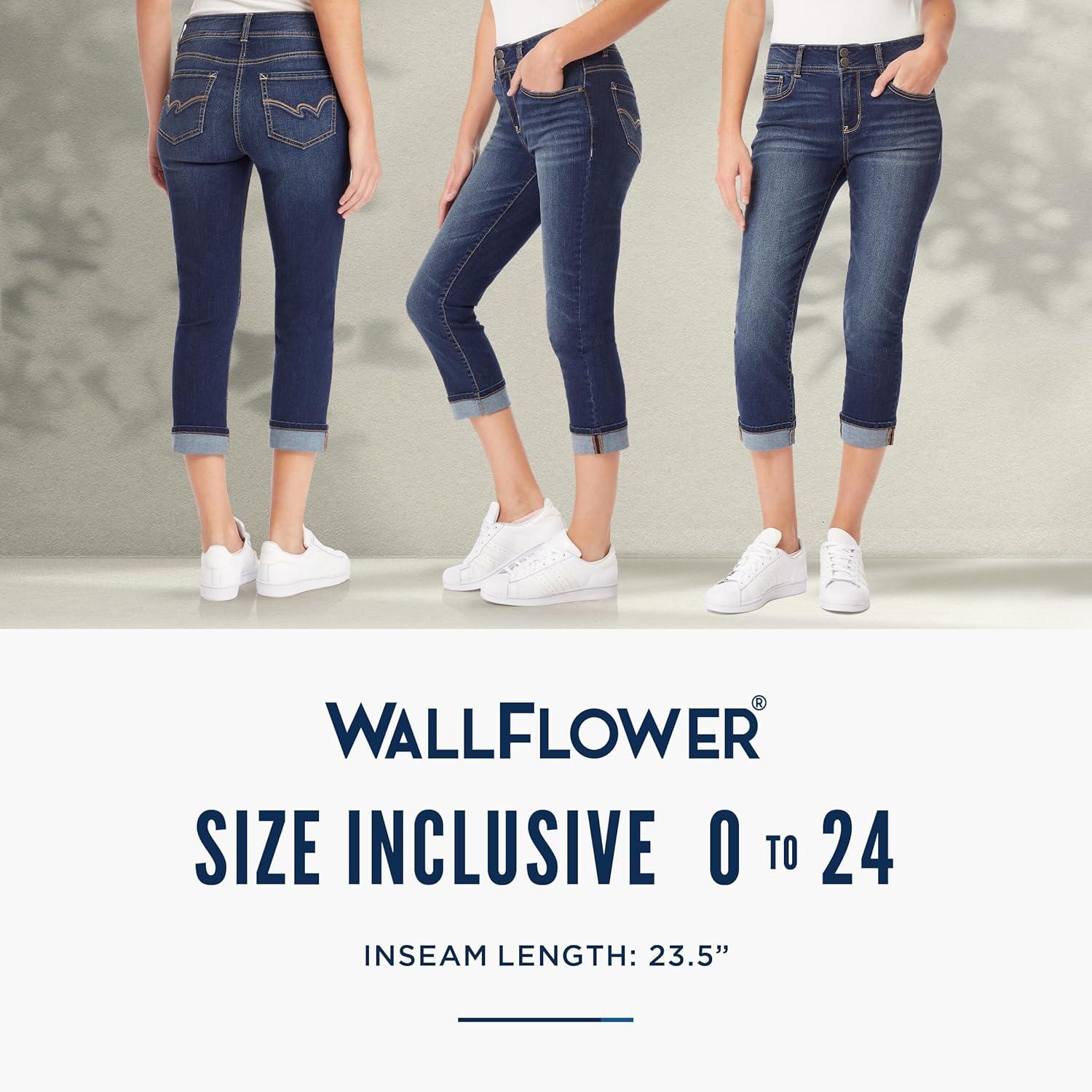 WallFlower women jeans womens crop in Insta Stretch denim is our stretchiest ever, with outstanding recovery that keeps your jeans looking amazing all day. The premium feel and endless holding power will make these your new favorite jeans for women, high rise jeans. Your look isn't complete without our curve enhancing stretchy jeans for women. The contoured waistband and roomier hips and thighs eliminate gapping so you can move with confidence.These high-performance womens high rise jeans, cropped jeans for women feature a flattering 23.5” cropped inseam for a more relaxed look. Our signature high rise jeans women with wider waistband and 5 pocket styling for elevated and functional high rise skinny jeans for women, high rise stretch jeans for women, high rise womens jeans, women high rise jeans, womens jeans high rise. Maintain your cool and casual style whether you're on horseback or heading back to school. Complete your 90s, y2k, festival and everyday looks. Look and feel amazing, from size 0 to 24. Find straight size crop jeans for women, mid size cropped jeans, women jeans high rise and plus size womens cropped jeans, high rise curvy jeans for women. Made for Every Body. Period. Join the wall flower jeans journey to more eco-friendly processes for more sustainable garments. By 2026, we at wallflower aim to source 50% of our cotton through the Better Cotton program—supporting water-efficient farming practices that benefit both farmers and the environment.