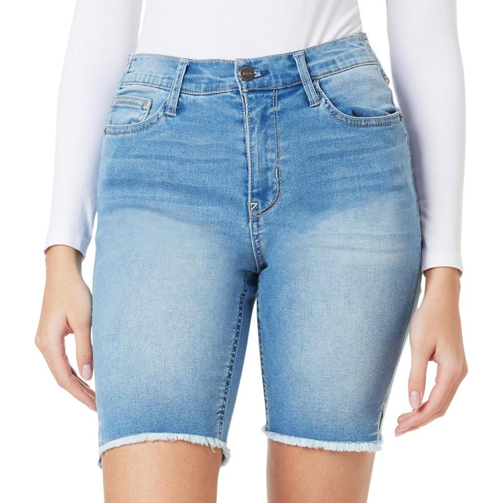 WallFlower Womens Irresistible Denim Shorts High-Rise Insta Soft Juniors (Standard and Plus)(Iris)