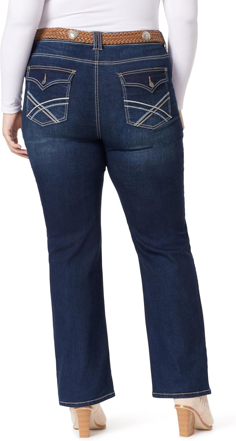 Get your cowboy boots ready! Long & lean with the perfect kick leg opening complimented by a country vibe belts. These WallFower womens work jeans sit low on waist, fitted through the knee with a flare to the ankles for a classic leg-lengthening silhouette: ready for any occasion. Contemporary western clothing for women with classic front pocket styling and embellished back flap pockets to elevate your outfit. Maintain your cool and casual style whether you're on horseback or heading back to school. Complete your 90s, y2k, festival and everyday looks. Get the perfect fit – Look and feel amazing, from size 0 to 24. Find standard and plus size jeans, in 3 different inseam lengths. Made for Every Body. Period.