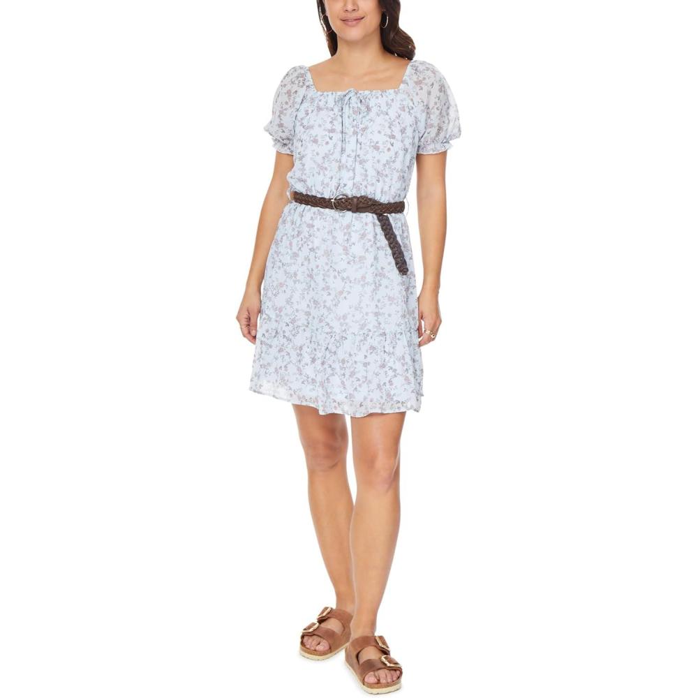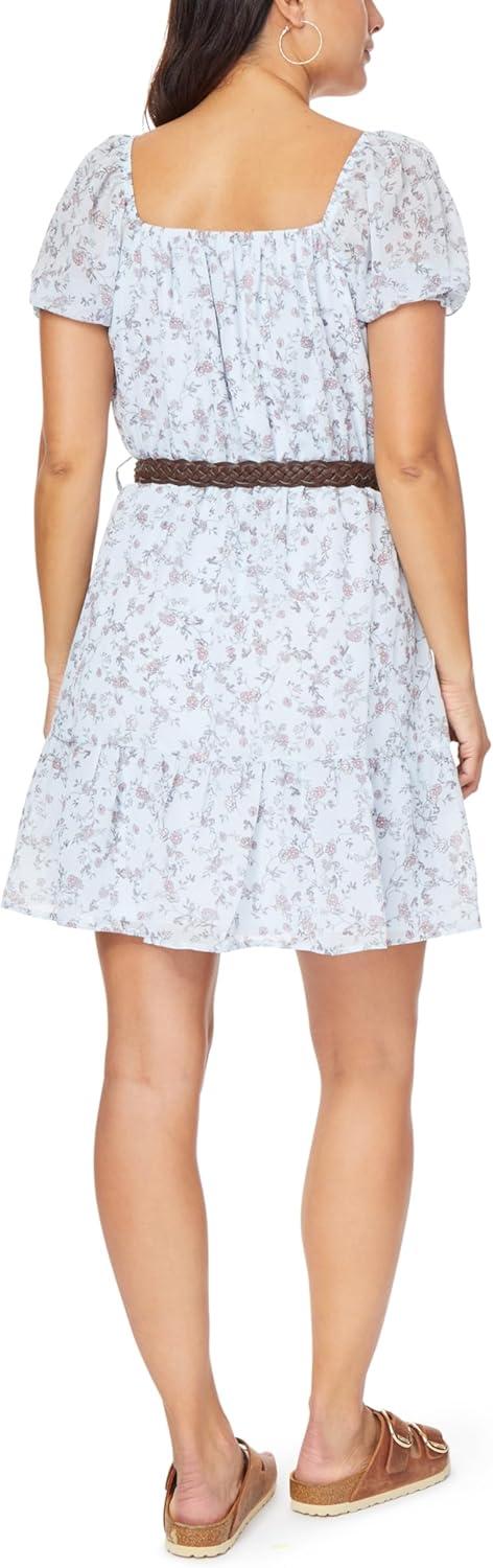 WallFlower Women’s Lottie Chiffon Puff Sleve Mini Belted Dress(Plein Air)