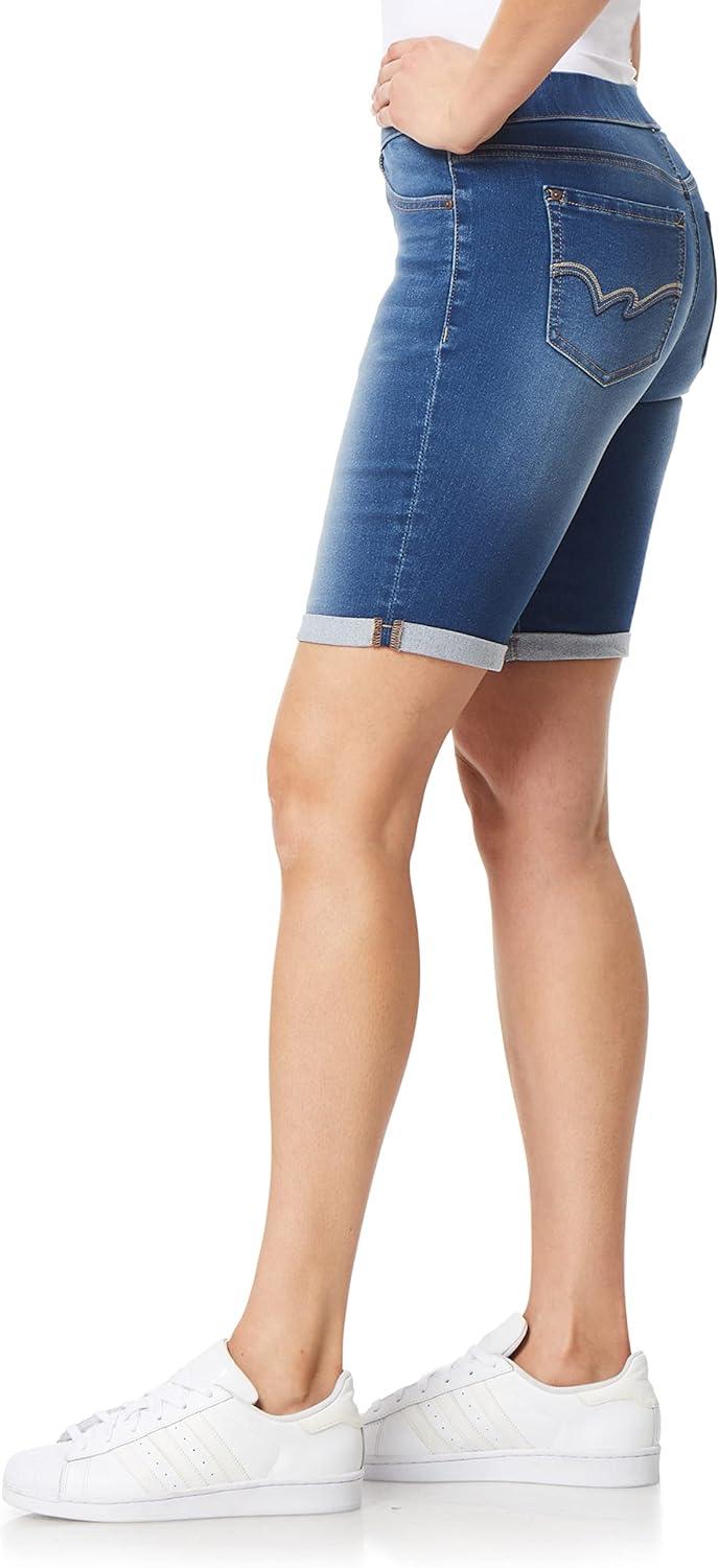 WallFlower Women’s Pull On Bermuda Denim Shorts 9″ High-Rise Insta Soft Juniors(Hayden)
