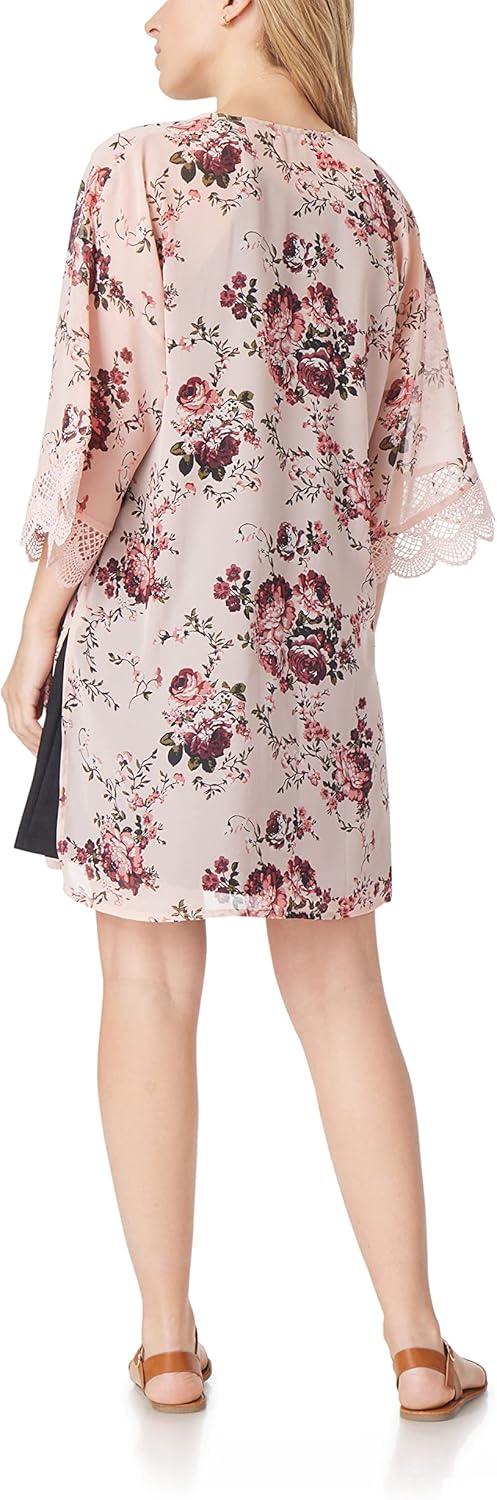 imageWallFlower Womens Sleeveless Swing Dress ampamp Printed Kimono SetPink Classic Floral With Black Dress