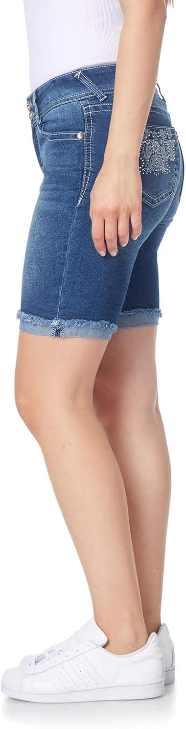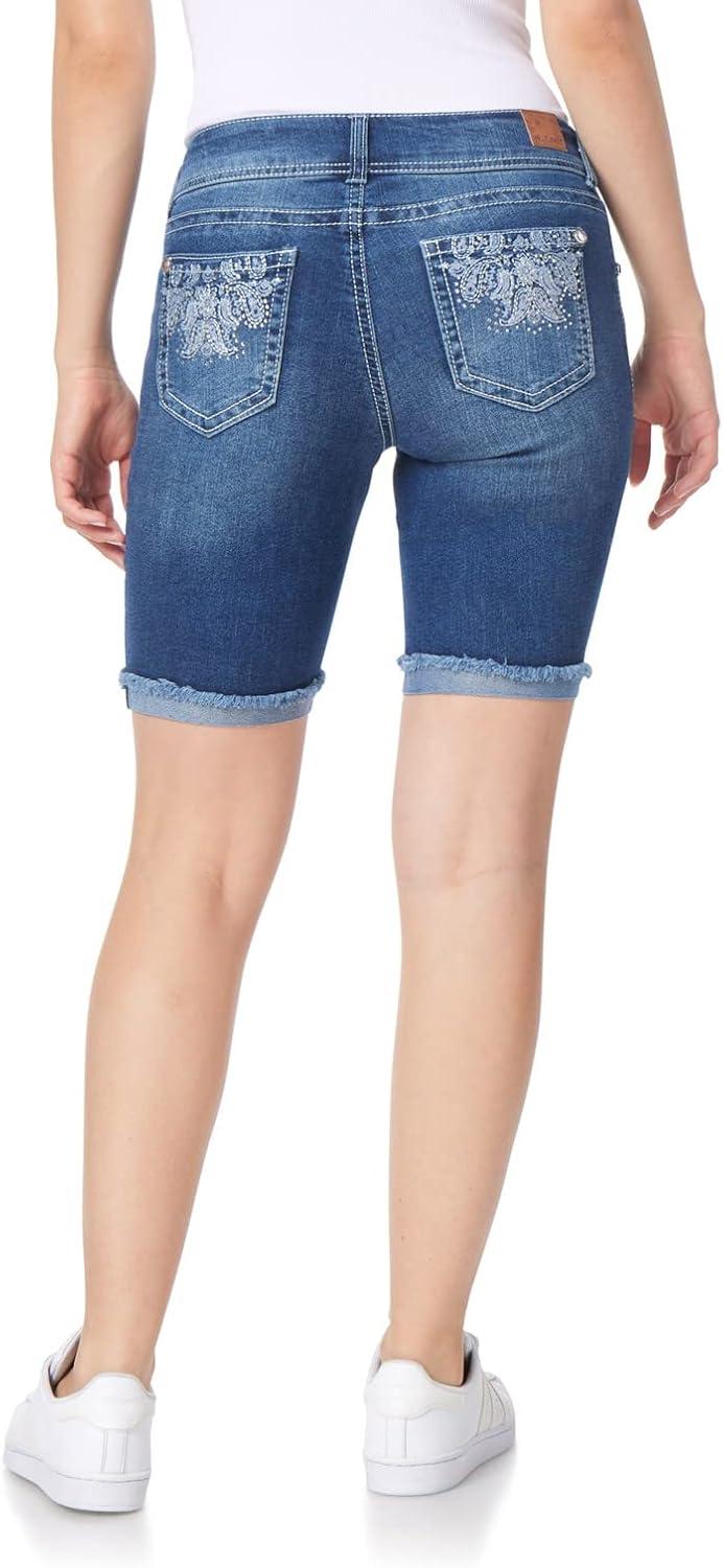 WallFlower Women’s (Standard and Plus) Luscious Curvy 9-inch Mid-Rise Bermuda Shorts(9″ Clarke Bling Bermuda)