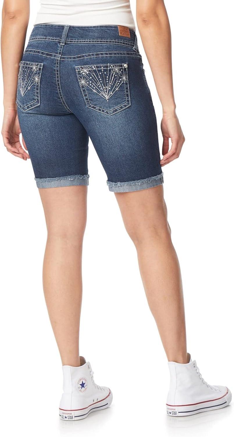 WallFlower Women’s (Standard and Plus) Luscious Curvy 9-inch Mid-Rise Bermuda Shorts(9″ Clarke Bling Bermuda)