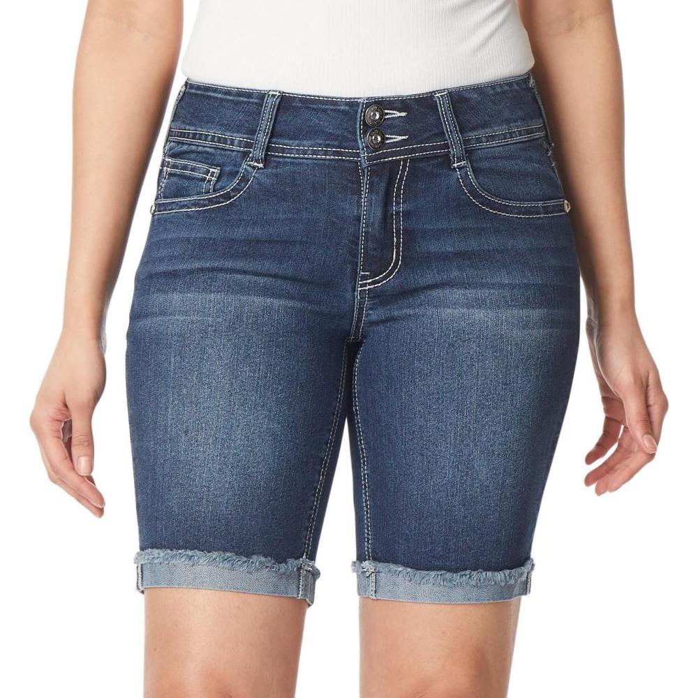 WallFlower Women’s (Standard and Plus) Luscious Curvy 9-inch Mid-Rise Bermuda Shorts(9″ Jenna Bermuda)