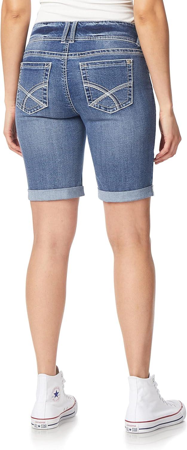 WallFlower Women’s (Standard and Plus) Luscious Curvy 9-inch Mid-Rise Bermuda Shorts(9″ Clarke Bling Bermuda)