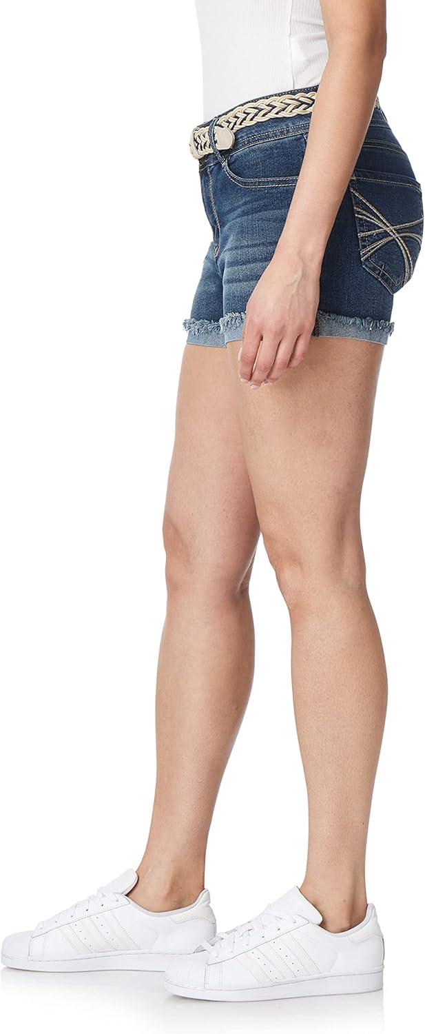 WallFlower Women’s (Standard and Plus) Luscious Curvy 9-inch Mid-Rise Bermuda Shorts(Alani Belted Short)