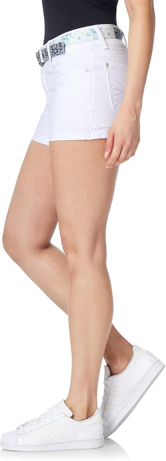 WallFlower Women’s (Standard and Plus) Luscious Curvy 9-inch Mid-Rise Bermuda Shorts(White Belted Short)