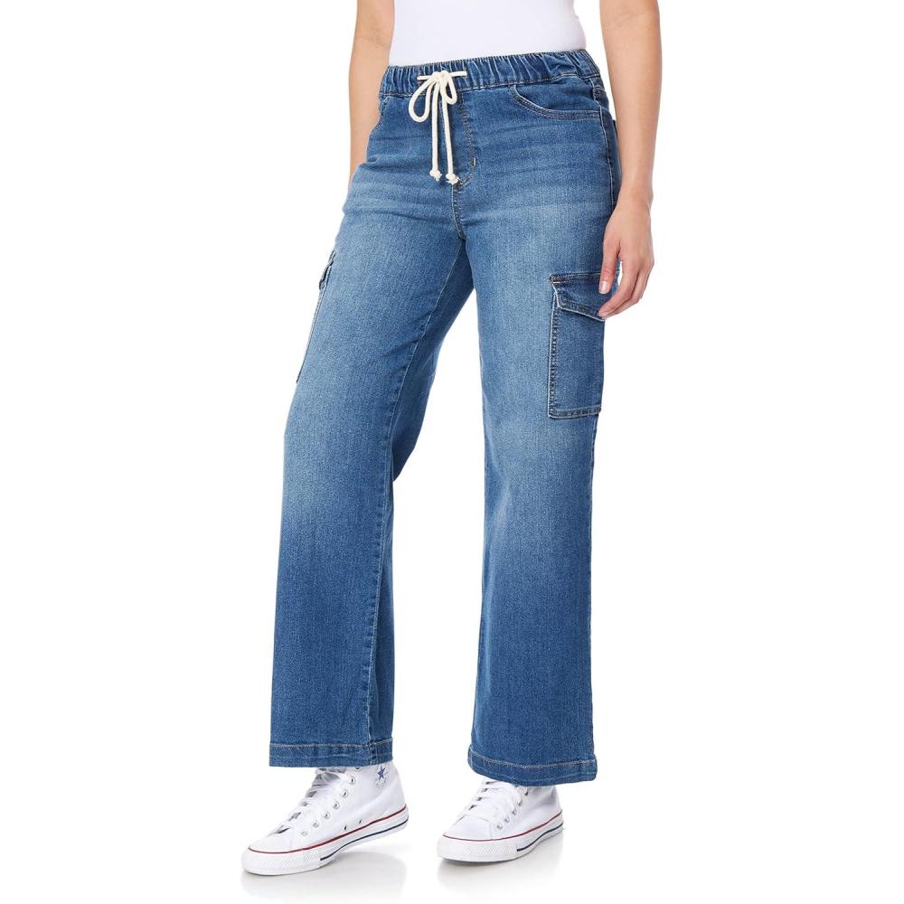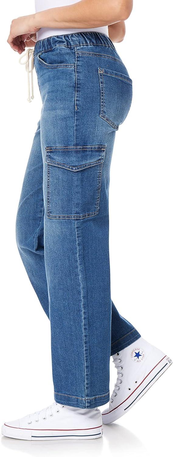 WallFlower Women's Tomboy Relaxed Cargo Denim Mid-Rise Insta Stretch Juniors Jeans(Veronica)