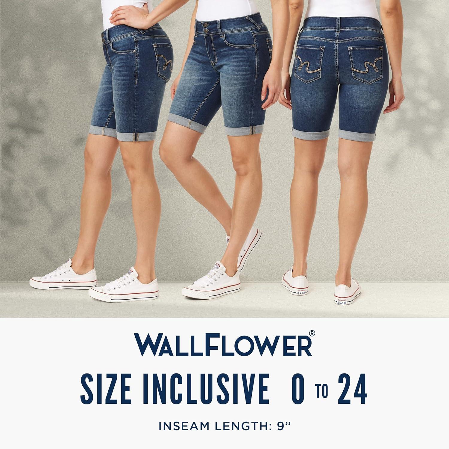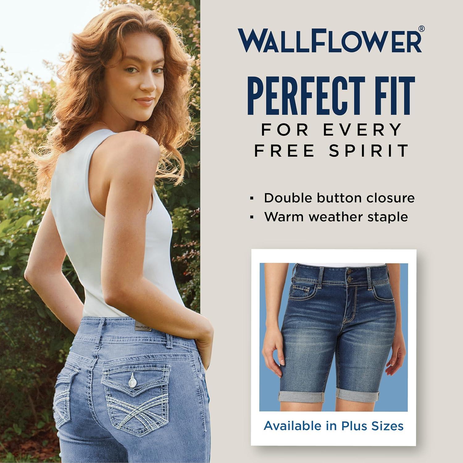 WallFlower Ultra Bermuda Shorts are designed to give you the perfect blend of style, comfort, and eco-conscious fashion. These jeans shorts for women offer a flattering fit with a super soft fabric that stretches to move with you. Whether you’re lounging by the pool, heading to a festival, or out for a casual day, these denim shorts for women are a must-have for your wardrobe. With a mid-rise waist and a classic 5-pocket design, these women’s denim shorts provide both fashion and function. WallFlower is proud to offer womens plus size shorts , making it easy for all women, including those with curvy figures, to find the perfect fit. Our shorts are crafted with premium denim that’s designed to hug your body in all the right places while offering freedom of movement. The addition of pockets makes them both practical and stylish—perfect for holding your essentials. Perfect for layering or wearing on their own, these jean shorts womens come in a variety of washes and sizes, making it easy to find the one that suits your style and body. Whether you’re looking for a go-to pair for hot weather or a versatile option for all occasions, WallFlower Ultra Bermuda Shorts are a great addition to any wardrobe. With WallFlower’s commitment to sustainability, you can feel good about your purchase. We use eco-friendly materials and processes, including recycled paper tags and environmentally conscious denim, ensuring that your womens shorts denim are not only chic but also kind to the planet. These womens plus size shorts are a great choice for those who want to stay stylish and comfortable while making an eco-conscious decision.